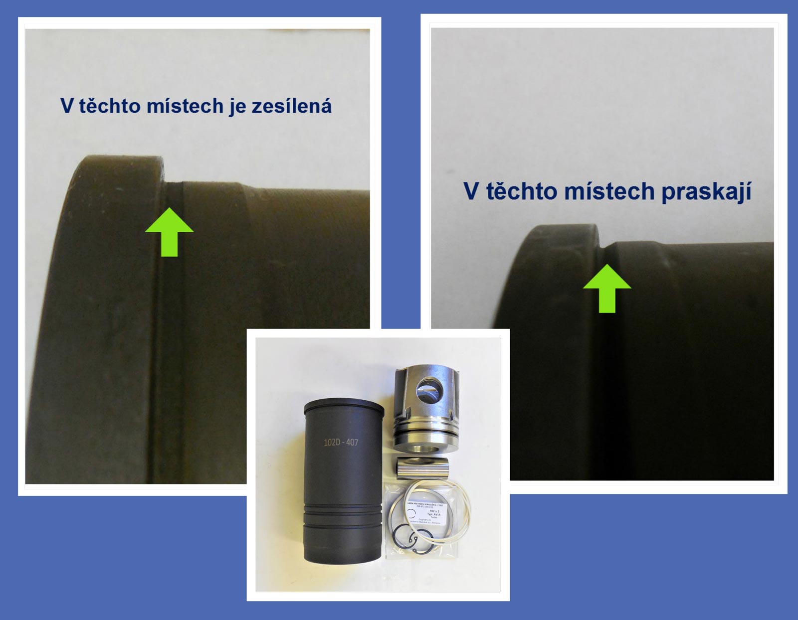 • Prodáváme vložené válce standartní i válce se zesíleným hlavovým uložením